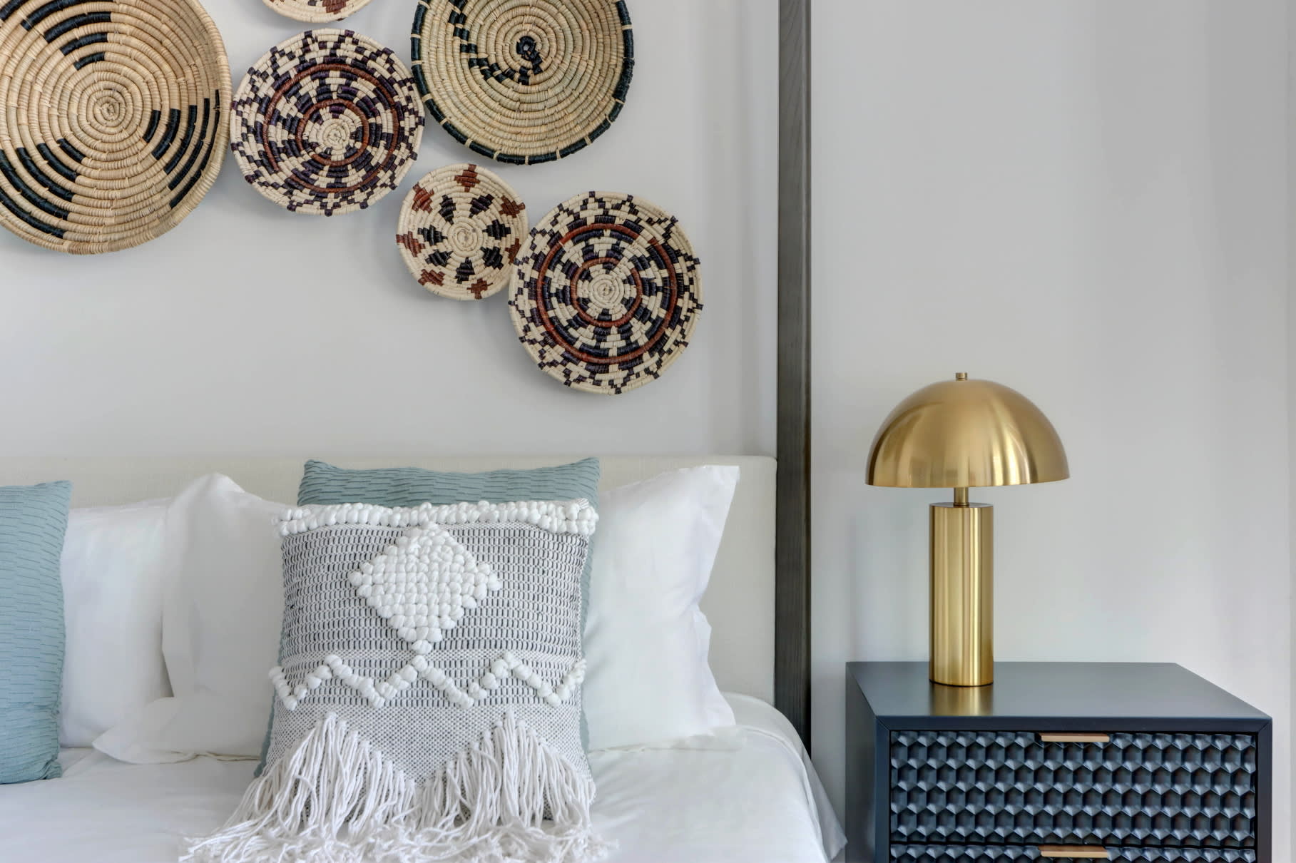 At the end of the living room are an ensuite and a bunkroom. In the ensuite, find a new queen bed with crisp linens. Stylish décor, contemporary end tables, and a dresser provide a comfortable environment for a great night’s rest. The bunk room features a full and twin mattress, perfect for the kids or extra friends.