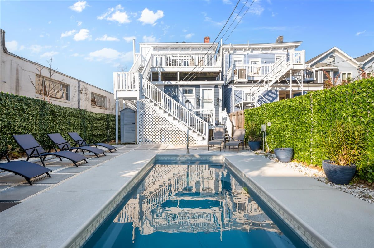 Welcome to the Grand Hall, located on Hall St. This beautiful Victorian features five bedrooms, three and a half baths, and elegant accents throughout. Set up as a split unit, the home has two kitchens and two living spaces, providing ample room to spread out. Step out back to enjoy an upper and lower deck, and your own private hot tub and pool!