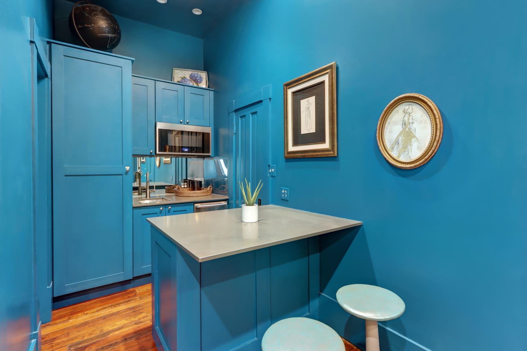 Covered from head to toe in original artwork, much of which is actually produced by the owner and her family, you will feel as though you’re strolling through a private art gallery. Just pour a Merlot, and let your curiosity and imagination run wild as you admire all the little details. The living room is the perfect place to relax and entertain your guests with plenty of comfy seating, a smart TV and lots of coffee table space to gather ‘round and play some cards. Settle in to the azure blue Chatsworth Room, the owner’s interpretation of an English “snug”, for an evening of conversation and cocktails beneath the soothing glow of pierced metal lanterns. Let the conversation spill into the open dining room and kitchen as you enjoy the large formal dining table surrounded by authentic Louis Ghost Chairs, or perch on a stool at the spacious, Carrara marble bar. The sleek kitchen is an entertainer’s dream, with ample counter space and everything you need to show off your culinary and mixology skills to the group as you whip up some hand-crafted nibbles and drinks before heading out for the night. After all the fun, head upstairs to one of the three exceedingly comfortable bedrooms. Blissfully unwind in the delightful master suite, where you’ll find a sumptuous king bed, and an extravagant marble bathroom with both a rain shower and a soaking tub. The second bedroom, a sublimely bright and cheerful room, has a diamond-tufted king bed and shares a hall bath with the third bedroom, an enchanting room with another, wonderfully cozy king bed. Each bedroom has floor to ceiling boutique closets, so if you like to have plenty of outfit choices for the day, we’ve got you covered.