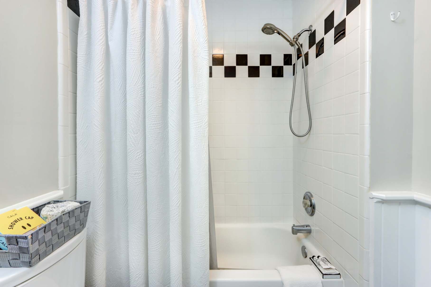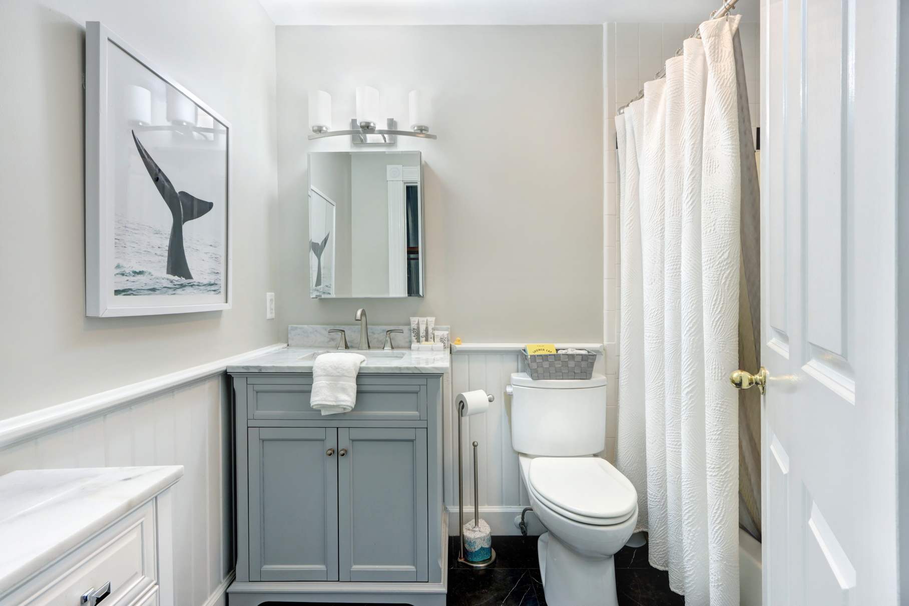 1 sparkling bathroom with fluffy towels & toiletries