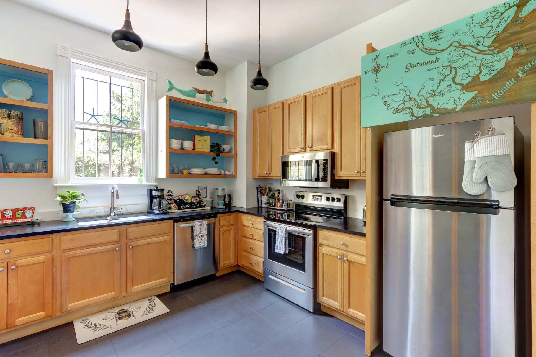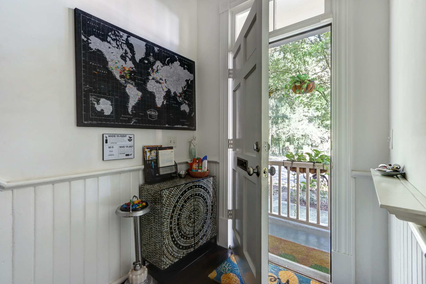 Welcome to The Mermaid Cove, your whimsical retreat in Savannah’s Historic District. This charming 1-bed/1-bath ground-floor hideaway offers modern comfort wrapped in coastal-inspired style. Step out the back door to your private patio with seating and umbrella, perfect for sipping wine in the evening or enjoying a shaded morning coffee. With a leafy park just across the street and River Street, Forsyth Park, and SCAD only minutes away, this home makes it effortless to explore all of Savannah’s history, charm, and nightlife.