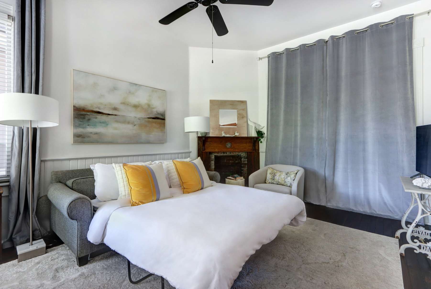 1 serene bedroom with plush queen bed & hotel-quality linens