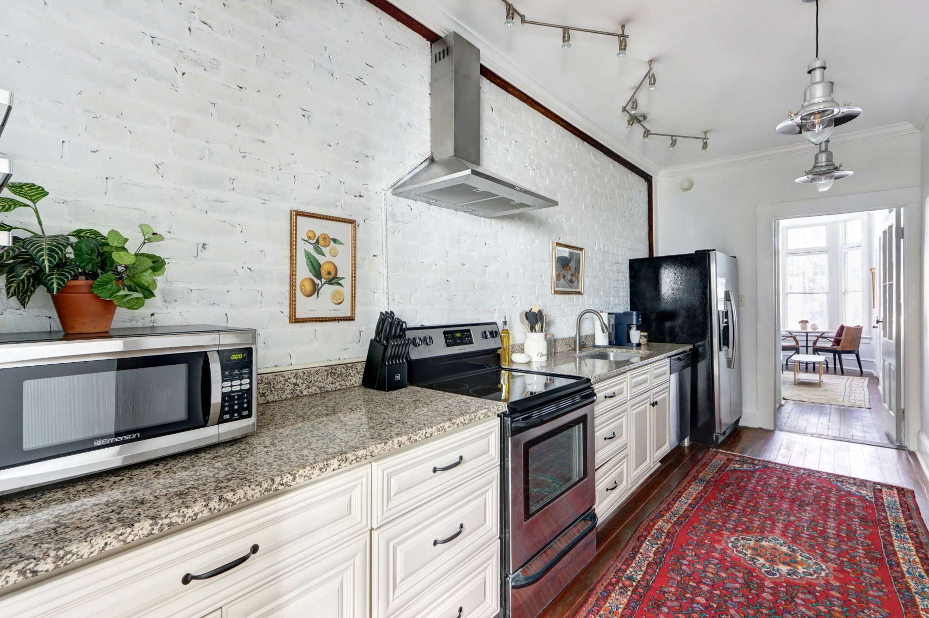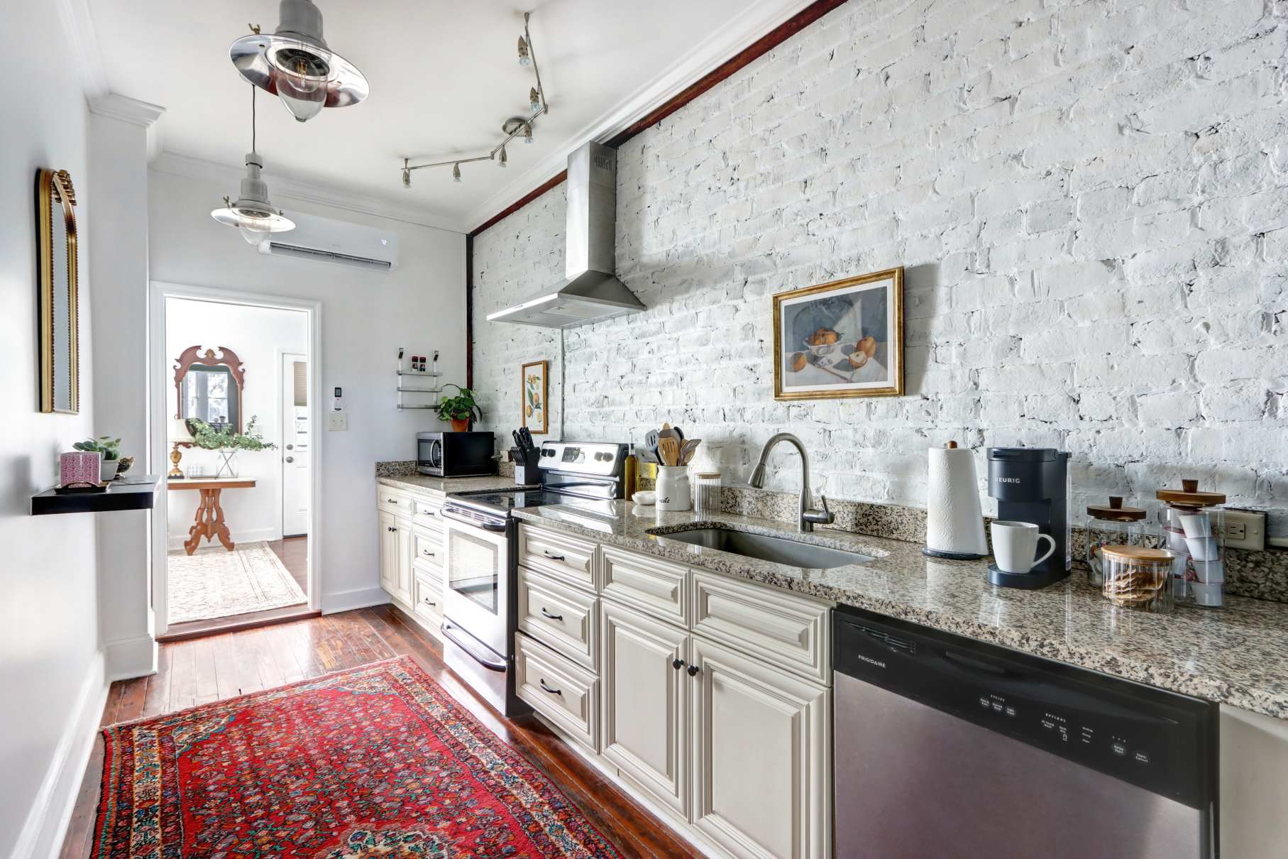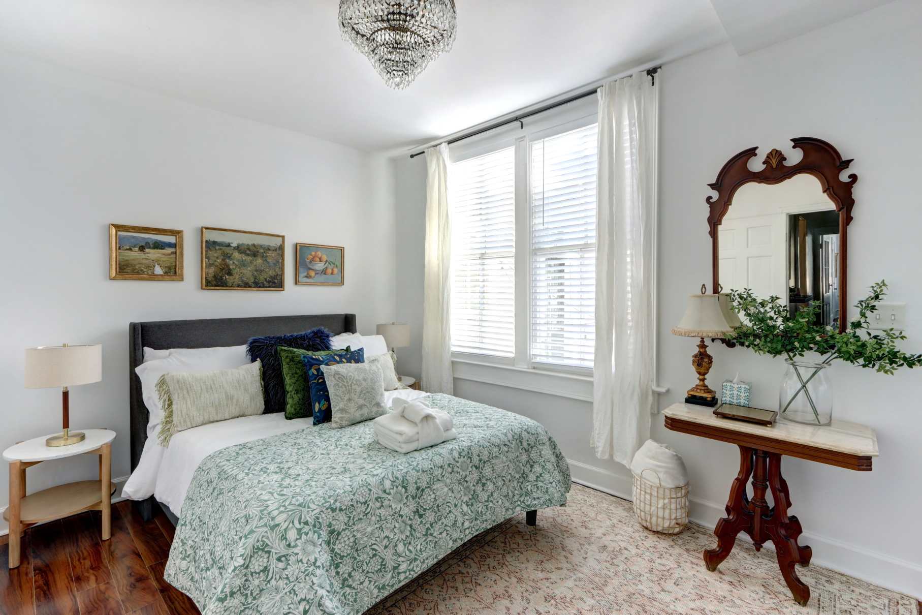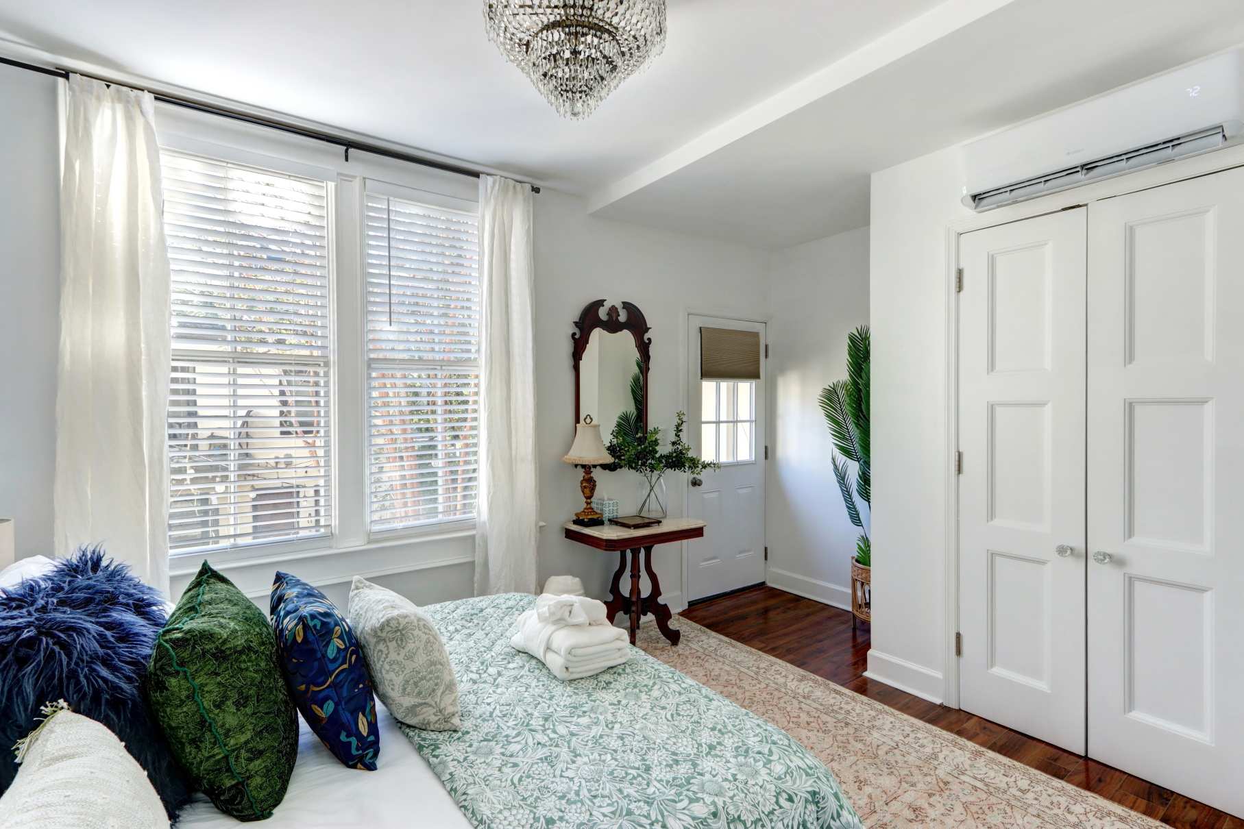 Step inside to find original hardwood floors and whitewashed brick walls that set the tone for a warm and welcoming stay. Thoughtfully decorated with elegant furnishings, soft lighting, and tasteful accents, the space exudes both sophistication and comfort—perfect for relaxing after a day of exploring Savannah’s cobblestone streets.