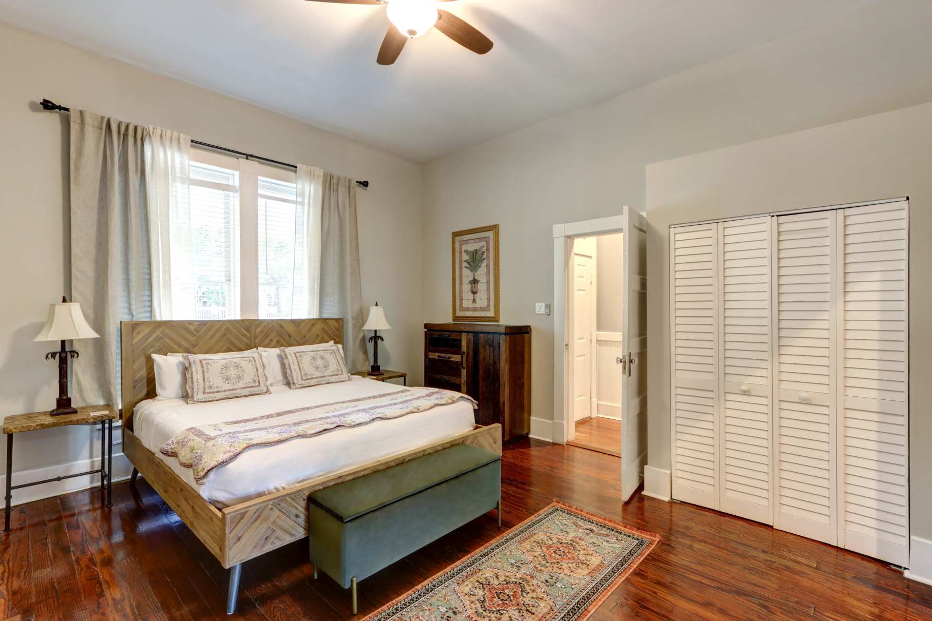 Nestled on East Waldburg Street, this charming flat sits in one of Savannah’s most walkable and picturesque neighborhoods, just a few blocks from Forsyth Park. Stroll beneath the moss-draped oaks to the park’s Saturday Farmers Market or grab brunch at Collins Quarter at Forsyth, a local favorite for coffee and Southern fare.